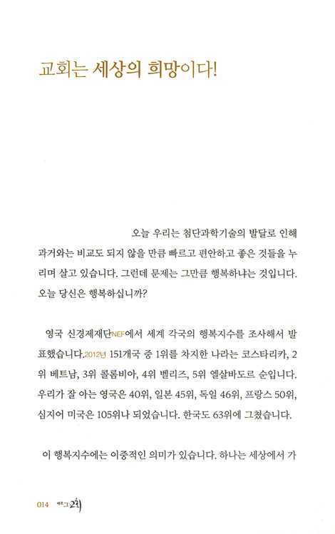 오직 교회만이 세상의, 그리고 당신의 희망입니다.