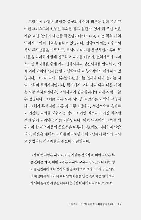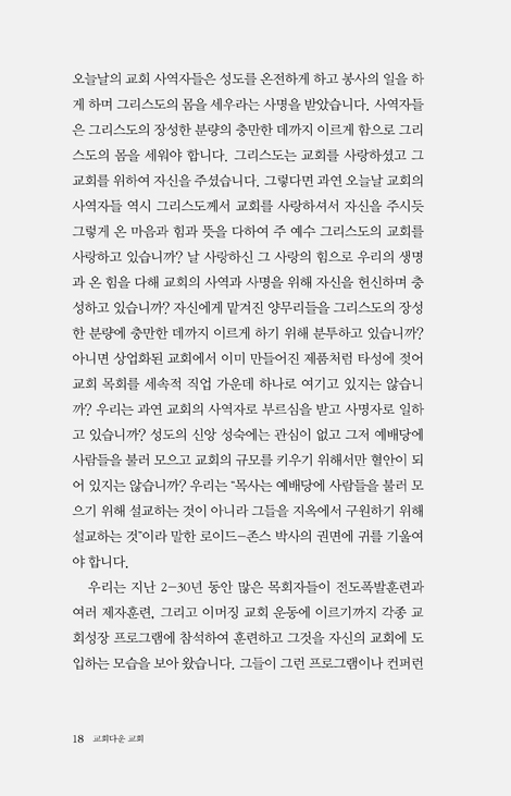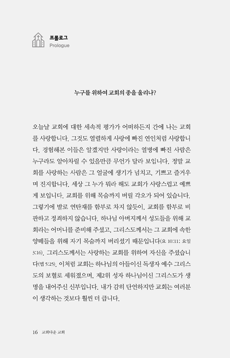 이 책을 통해 교회에 대한 논의가 여기저기서 활발하게 일어나면 좋겠습니다.