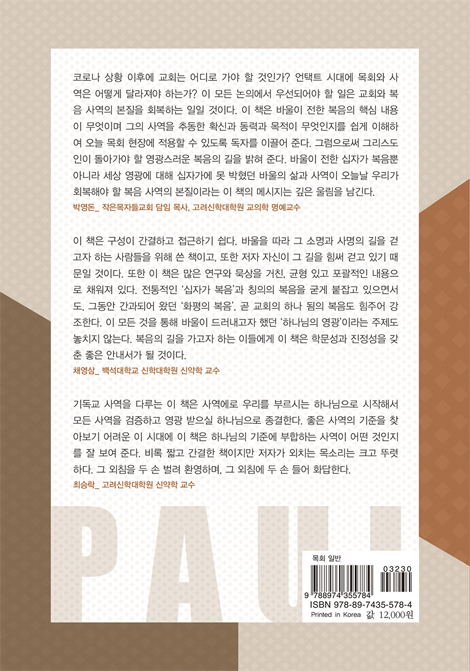 바울은 선교사이자 목회자로서 복음을 전하고 교회를 설립하고 성도를 양육했다. 그는 예루살렘에서부터 지금의 동유럽까지 복음을 전하고, 당시 땅끝으로 여겨졌던 스페인까지 가서 복음을 전하려는 열정을 품고 있었다. 자신의 삶을 다 드려 복음을 전하도록 바울을 밀어붙인 내적인 동력은 무엇일까? 여러 지역에 교회를 세우고 목회할 때 적용한 사역 원리는 무엇이었을까?