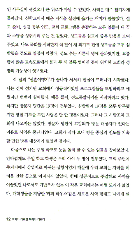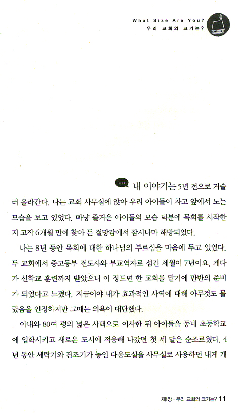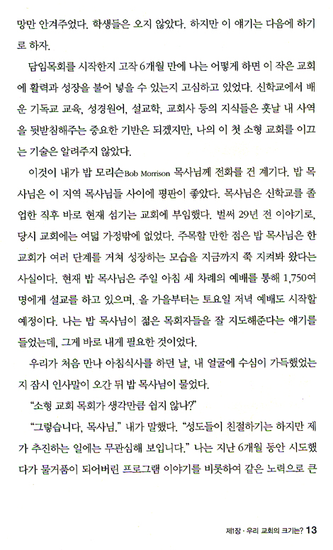 크기가 다른 교회들 사이의 중요한 차이점을 비롯하여 각각 다른 크기의 교회가 어떻게 가능하는지에 대해 깊은 통찰을 전해주는 이 책을 적극 추천합니다.