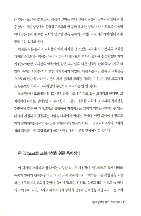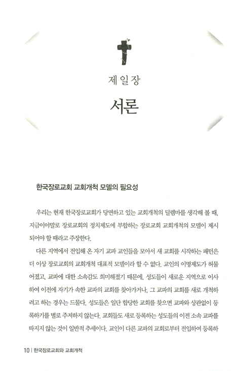 한국장로교회가 수많은 교회들을 개척했지만 현재의 추세대로 교회개척이 계속된다면 한국장로교회는 더 장로교회답지 않은 교회가 되고 말 것이다. _저자서문 중에서
