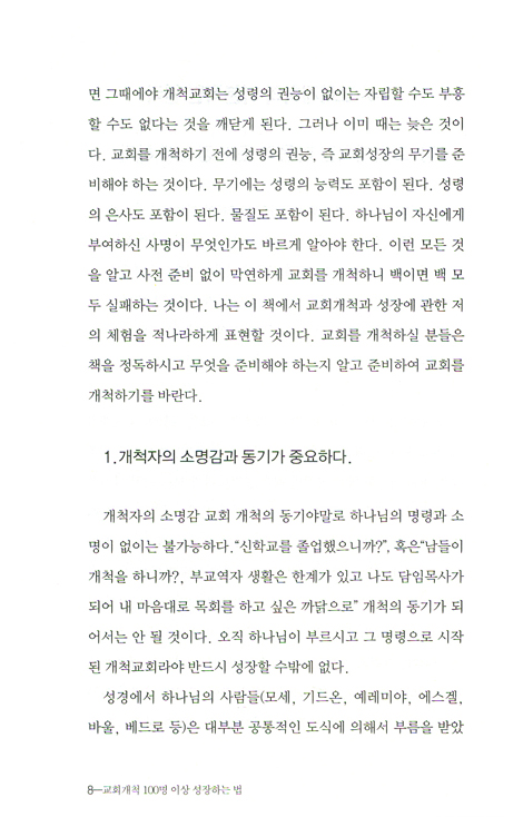 한마디로 이 책은 교회를 개척하려는 목회자들에게 희망을 주는 책이다.