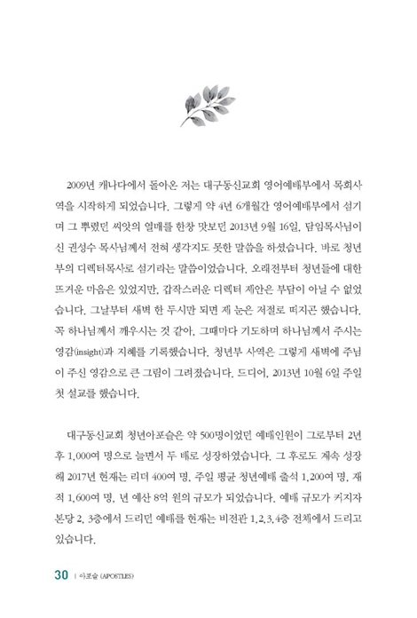 전국에서 많은 탐방 팀들이 교회를 방문할 때 다 나누지 못했던 부흥의 DNA와 목회철학을 이 책 <아포슬>을 통해 나누고자 저술하였습니다!