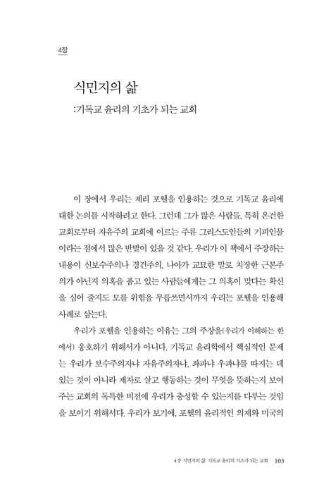 4장 식민지의 삶: 기독교 윤리의 기초가 되는 교회