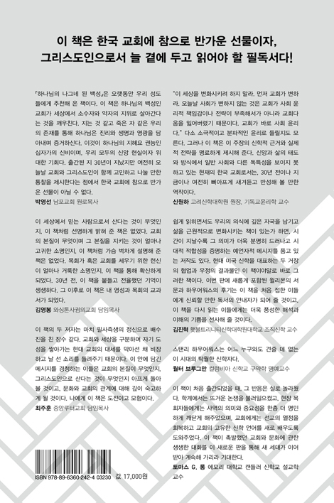 이 책이 처음 출간되었을 때, 그 반응은 실로 놀라웠다. 학계에서는 뜨거운 논쟁을 불러일으켰고, 현장 목회자들에게는 사역의 의미와 중요성을 한층 더 명민하게 깨닫게 해주었으며, 교회에게는 선교의 열정을 회복하고 교회의 고유한 신학 언어를 새로 배우도록 도와주었다. 한 권의 책이 가져온 결과라고 믿기 어려울 정도로 광범위한 영향을 미쳤다. 이 책이 촉발했던 교회와 문화에 관한 생생한 대화를 이 새로운 판을 통해 새 세대가 이어받아 계속해 가리라 기대한다.