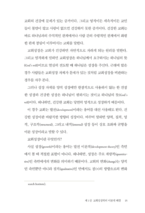 제1장 건강한 교회성장학의 이론적 배경