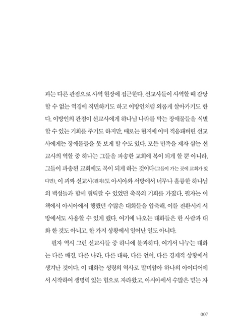 이 괴짜 선교사(필자)도 아시아와 서방에서 너무나 훌륭한 하나님의 백성들과 함께 협력할 수 있었던 축복의 기회를 가졌다. 필자는 이 책에서 아시아에서 행했던 수많은 대화들을 압축하여, 이를 전환시켜 서방에서도 사용할 수 있게 했다. 여기에 나오는 대화들은 한 사람과 대화 한 것도 아니고, 한 가지 상황에서 일어난 일도 아니다.
