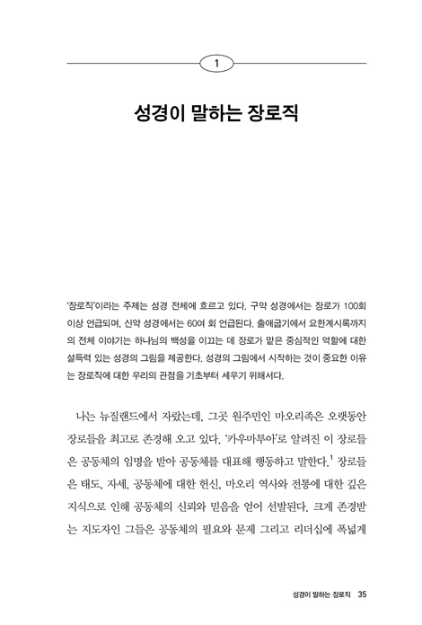 실제로 개인의 품성은 장로직의 핵심 자격 중 하나다. 그러나 우리가 성경의 인도를 따른다면, 장로들의 역할을 살필 때 주로 장로 집단과 그들이 팀으로서 행하는 공동 사역을 검토해야 한다. 우리의 기본 질문은 한 명의 장로는 어떤 사람이고 어떤 일을 해야 하는가가 아니라, 장로들은 어떤 사람들이고 어떤 일을 해야 하는가다.