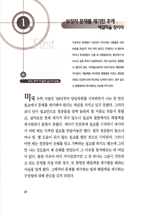 이 책으로 설교자들의 고민이 단번에 해결될 것이다. 이 책을 한 장씩 연구해 보면 설교자가 터득해야 할 설교 구상법이 저절로 습득될 것이다.