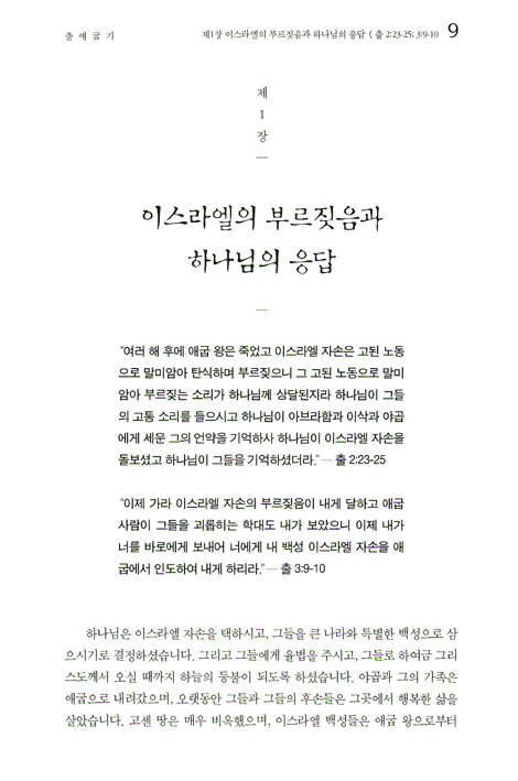 제1장 이스라엘의 부르짖음과 하나님의 응답 (출2:23-25; 3:9-10)