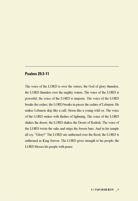 한글과 영어를 함께 수록하여 이중 언어를 통한 풍성한 은혜를 얻도록 돕는 책입니다.