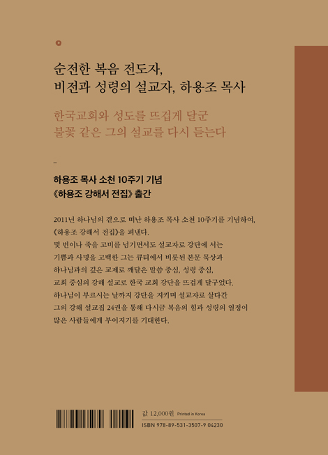 하용조 목사는 생전에 수십 권의 저서를 남겼고 그중 많은 내용들이 강해 설교이다. 저자만의 고유한 강해 설교는 목회자는 물론 평신도들에게 성경 본문을 막론하고 복음이 무엇인지, 예수님이 누구인지, 성령님이 누구인지, 교회가 무엇인지, 제자로서 전도와 선교를 왜 해야 하는지에 철저하게 초점이 맞춰져 있다. 그렇기 때문에 그의 강해 설교는 본문에 충실하면서도 설교를 듣는 이들에게 하나님의 생각과 마음을 알아 그리스도의 제자로 이 시대에 어떻게 살아가야 하는지 생활 적용이 가능하게 해주었다. 머리에서 가슴으로, 가슴에서 생활로 이어지는 실천적 적용이 강해설교에서도 빛을 발했다 하겠다. 학식이나 연령에 상관없이 누가 들어도 이해 가능한 설교를 지향했던 저자는 심각한 육체의 고난 속에서도 하나님의 뜻을 전하기 위해 절박하게 성경을 붙잡고 강단을 지켰다. 그 진액 같은 하나하나의 설교가 24권의 강해서 시리즈로 개정되었다.
