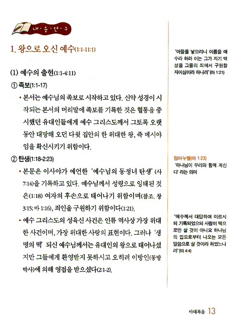 ★ 각 성경의 첫 부분에 간략한 개요를 읽으며 각 권의 핵심적인 내용과 특징을 파악할 수 있고, 내용분해를 통하여 성경의 내용이 한눈에 들어오게 하였다.