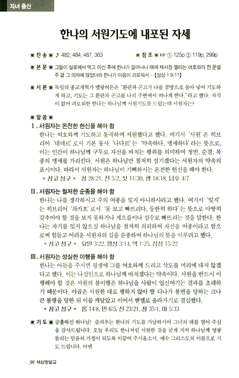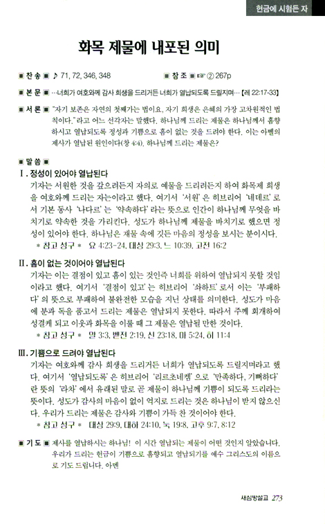 • 이 책의 참조 ‘☞① 100p’는 본 설교와 연과있는 자료가 저장된 본 편집부에서 엮은 <설교자료뱅크> 1권 100쪽을 보시라는 사인입니다. 설교자료뱅크는 현재 3권까지 출간되어 있습니다.