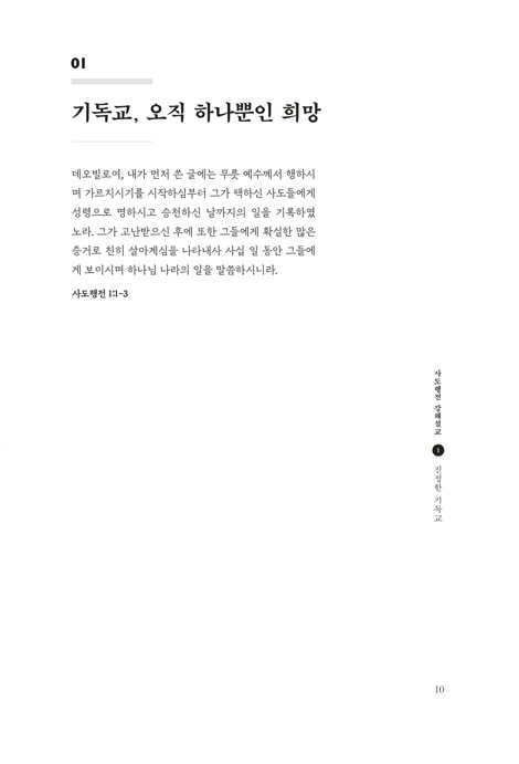 사도행전은 신약성경에서 가장 강력한 사건들을 기록하고 있다. 성령의 강림, 교회의 탄생, 확신에 찬 사도들의 설교, 드라마틱한 선교 여정, 구원받은 영혼과 거듭난 삶의 증거들……. 그것은 무기력한 오늘의 교회와 그리스도인들에게, 사도적 교회의 영적 통찰과 뜨거운 신앙으로 우리를 격려하고 도전한다.