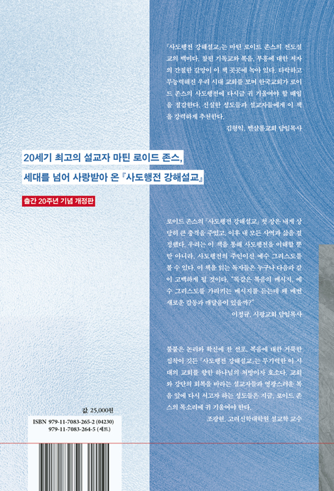 역사상 수많은 설교자들이 사도행전을 설교했고, 지금도 사도행전에 대한 책들이 쏟아져 나오고 있음에도 우리가 마틴 로이드 존스의 『사도행전 강해설교』에 주목해야 할 분명한 이유가 있다. 첫째, 사도행전 강해는 마틴 로이드 존스가 자신의 사역 마지막 시기에 주일 저녁마다 전했던 그의 전도설교의 백미이기 때문이다. 그는 사도행전 강해에서 참된 기독교와 복음이 무엇인지를 선명하게 보여주었다. 나는 이 복음이야말로 오늘 우리 시대 설교자들이 잃어버린 본질이라고 생각한다. 둘째, 부흥에 대한 로이드 존스의 간절한 갈망이 이 책 곳곳에 녹아 있기 때문이다. 1981년 로이드 존스를 처음 읽기 시작했을 때, 나는 부흥에 대한 그의 갈망에 온전히 공감할 수 없었다. 그 당시 한국교회는 큰 어려움 없이 계속 성장하고 있었기 때문이다. 그로부터 수십 년이 지난 지금, 타락하고 무능력해진 교회를 보며 한국교회가 로이드 존스의 사도행전에 다시금 귀 기울여야 할 때임을 절감한다. 20세기 후반 영국교회의 현실을 보며 하나님의 주권적인 영적 부흥 없이는 인간의 그 어떤 노력으로도 교회를 회복할 수 없다고 느꼈던 그의 심정을 지금의 한국교회를 보며 절절히 이해하게 되었기 때문이다. 21세기 한국교회의 신실한 성도들과