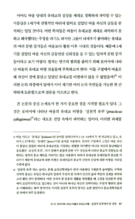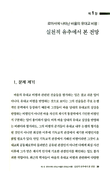 제1장 로마서에 나타난 바울의 유대교 비평 : 실천적 유추에서 본 전망