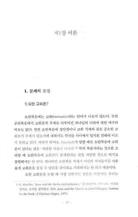 것을 알려 준다. 저자는 이 책에서 독자들이 질문할 수 있는, 요한복음에 교회론이