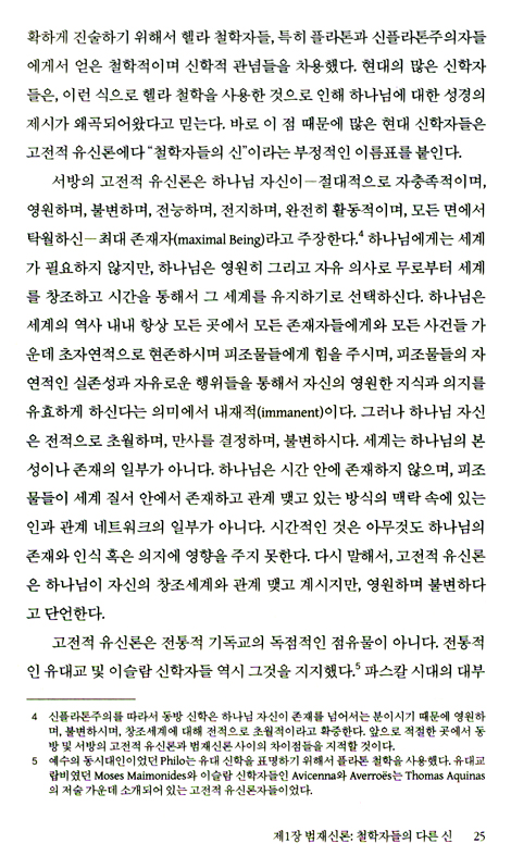 왜 대부분의 현대 신학자들이 기독교 정통 유신론의 울타리를 마다하고 “철학자들의 신” 구역에서 서성거리는지 궁금하다면, 자연과학과 신학의 상관관계를 설정함에 있어서 왜 그토록 양극적 신 개념에 집착하는지 이유를 알고 싶다면, 존 쿠퍼의 『철학자들의 신과 성서의 하나님』은 필독서 중의 필독서라고 할 수 있을 것이다.