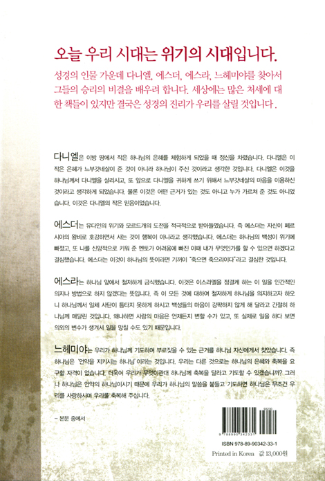 성경의 인물 가운데 다니엘, 에스더, 에스라, 느헤미야를 찾아서 그들의 승리의 비결을 배우려 합니다. 세상에는 많은 처세에 대한 책들이 있지만 결국은 성경의 진리가 우리를 살릴 것입니다.