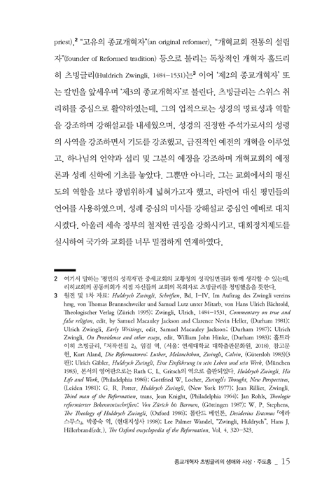 츠빙글리의 성경관과 스위스 종교개혁의 특징들·김재성 _ 169