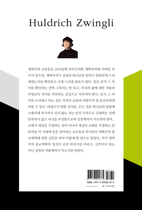 2018년 6월 몇몇 뜻을 같이하는 동료교수들과 함께 개혁교회종교개혁 500주년 기념대회 발기인 모임을 가졌다. 약 40여명의 신학자와 목사들이 함께 하였다. 한국교회 현장을 섬기는 기념대회를 하고자 뜻을 모았다. 현장교회를 찾아가는 기념대회를 하자는 것이었다. 그러기 위해 글을 쓰되 일반교인들을 대상으로 하는 보다 쉬운 글을 쓰기로 하였다. 세계 학회는 츠빙글리를 잊힌 종교개혁자라고 부른다. 그런 맥락에서 개혁교회의 아버지인 츠빙글리를 한국교회에 소개하는 자세로 글을 쓰기로 했다. 잊지 않아야 할 점은 츠빙글리의 글을 먼저 이해하고 소개하는 것이었다. 츠빙글리의 생애와 사상을 알려 개혁신학의 역사적 출발점이 어떠한지를 한국교회에 알림에 목적을 두었다. 뜻을 같이한 학자들은 함께 다른 성격의 글들을 쓰기 시작하였다. 지금까지와는 차별화된 방법으로 현장 교회를 섬기는 글을 신학자들이 써야만 했다. 어떤 의미에서 참으로 의미 있는 일이었다. 신학은 교회를 섬기는 학문이 아닌가! 학자들은 여러 번 글들을 수정해야 했다. 어떤 글은 너무 학문적이어서 교회의 성도들에게 소개하기에는 적절하지 않았다. 학회에서 발표하는 형식과 수준의 글은 본래의 취지에 어긋나기 때문이다.