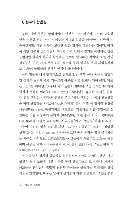 1장 국가의 합법성·한시성·보편성·책임성: 기독교 정치신학의 개요