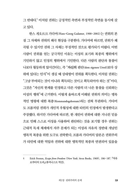 제2부에서는 권위주의적 종교와의 연관성 속에서 종교 중독의 문제를 다룬다. 저자는 종교 중독의 문제가 일부 사교 집단이나 기독교 사이비 집단뿐 아니라 급격한 양적 성장으로 이루어진 한국 개신교 전반에 광범위하게 퍼져 있음을 강조한다. 제3부에서는 종교 중독과의 연관성 속에서 기독교 근본주의를 다룬다. 여기서 저자는 미국의 근본주의에 대한 기존의 연구와 군사 독재 이데올로기와 결합된 한국의 기독교 근본주의의 특성을 자세히 살펴본다. 나아가 기독교 근본주의가 분단 의식의 고착화에 미친 부정적 영향을 신랄하게 비판한다.