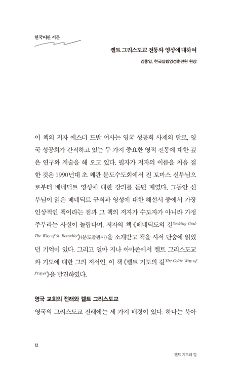 한국어판 서문 켈트 그리스도교 전통와 영성에 대하여 _김홍일