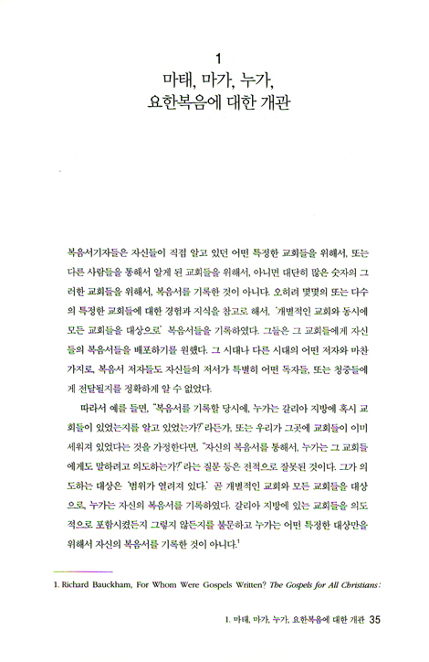 저자는 이 책에서 작고한 레이몬드 브라운이 가톨릭계에서 이루었던 작업들을 복음주의 신학계에서 완성했다. 결과적으로 이 책은 복음서의 주해적인 다양성을 존중하면서도, 복음서의 바탕이 되는 증거들의 일치를 강조하는 아주 재미있고 훌륭한 교과서가 되었다.