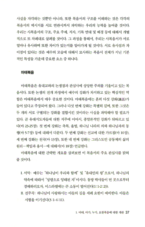1. 마태, 마가, 누가, 요한복음에 대한 개관