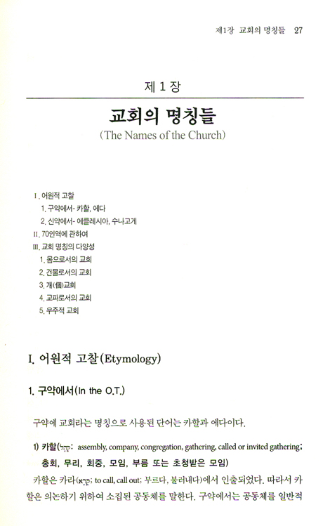 지금 한국 신학계에는 이 불초의 스승이시요, 보수신학의 거목이신 고故 박형룡 박사님의 『교의신학전집』을 비롯하여 개혁주의 신학을 대표하는 칼빈, 핫지, 에이. 핫지, 워필드, 메이첸, 바빙크, 벌코프, 반틸, 호크마, 버즈웰, 레이몬드, 그루뎀 등 저명한 신학자들의 저서들이 출간 또는 번역되었습니다. 그러나 독자들이 그 방대한 저서들을 이해하는 데 다소 어려움이 있는 듯합니다. 저자는 이점들을 감안하여 가급적 간결한 문체를 사용하였으며, 중요 신학 술어들은 원어(히브리어, 헬라어)와 영어로 표기했습니다. 그리고 그 내용 자체를 강의 또는 교리 설교로 사용할 수 있도록 시도하였습니다. _서문 중에서
