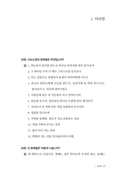 17. 성도가 서로 교통하는 것……을 믿사옵나이다