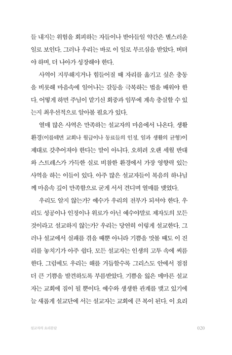-설교자의 부르심 및 설교자의 삶과 사역에 관한 깊은 통찰과 영감, 도전을 준다.