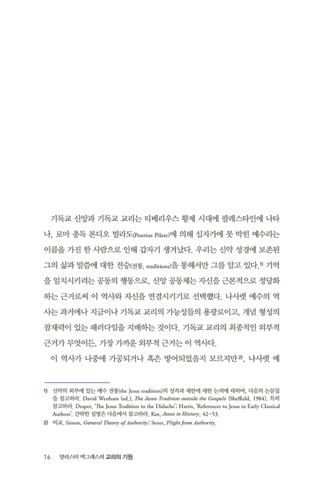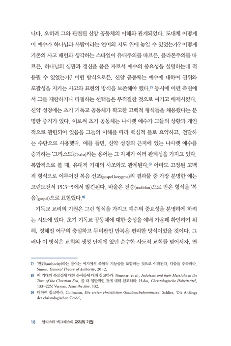 그럼에도 이 연구는 특성상 순전히 역사적이지 않다. 교리 비평의 분야도 전적으로 역사적 분석에 의존할 수는 없다. 규범적인 개념의 요구는 역사적 상술에 기초해서만 생성될 수 없다. 이 연구에서는 한편으로는 역사적이며 서술적인 것과, 다른 한편으로는 신학적이며 규범적인 것 사이의 창조적인 변증을 담고 있다.