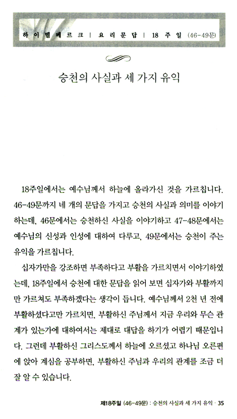 제18주일(46-49문) 승천의 사실과 세 가지 유익