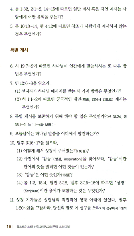 이 자료는 장로나 집사로 섬길 사람을 훈련할 때 주요 교재로 사용되어 효력을 발합니다. 그뿐이 아닙니다. 우리는 교인을 훈련하고 또 많은 사람이 제자를 훈련하는 데 이 교재를 사용하도록, 주일 학교와 성인 성경 공부 그룹에서도 채택하고 있습니다.