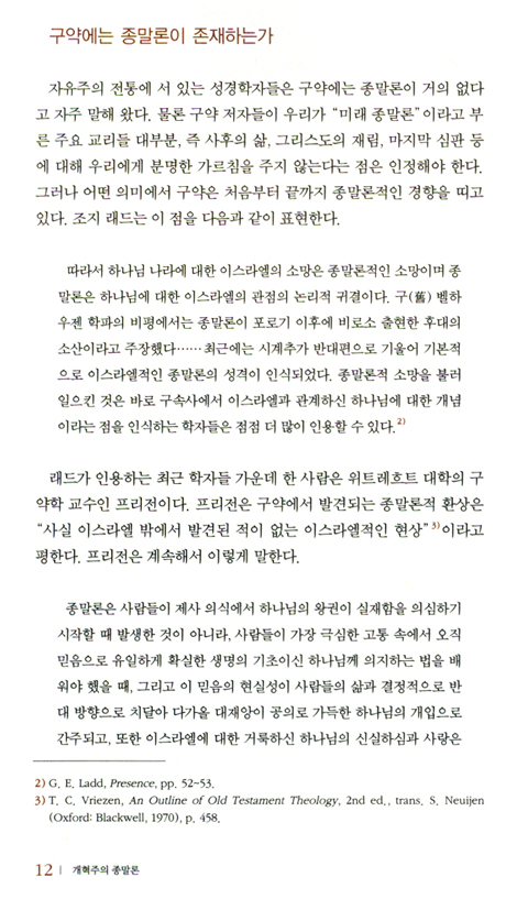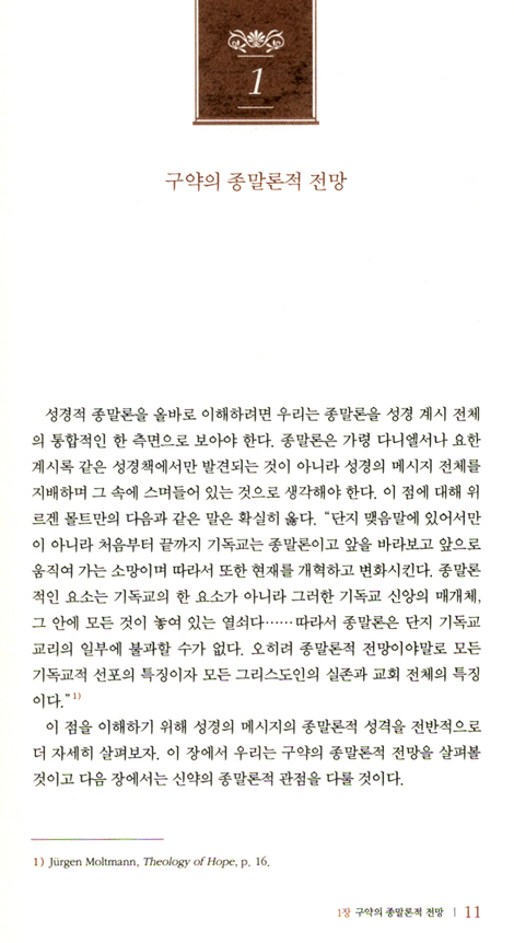 이 책은 성경적 종말론, 즉 성경이 미래에 대해 가르치는 내용을 제시하려는 하나의 시도다. 부록에서 언급한 것처럼 종말론적 입장에는 크게 세 가지가 있는데 각 입장은 하나님 나라의 도래에 대한 서로 다른 관점, 즉 하나님 나라는 (1) 현재적이거나 (2) 미래적이거나 (3) 현재적인 동시에 미래적이라는 관점을 갖고 있다. 이 연구서에서 채택한 관점은 세 번째 관점, 즉 ‘이미’-그리스도께서 시작하신 것으로서의 하나님 나라의 현재 상태-와 ‘아직’-그리스도의 재림 때 발생할 하나님 나라의 최종적 수립-의 차이를 인식하는 관점이다.
