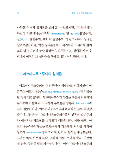 최근에 미국 칼빈 신학교에서 이 주제에 대한 연구로 박사학위를 취득한 지은이는, 다소 복잡하고 난해한 주제를 다루면서도 각각의 칭의론이 가진 문제점을 지적하고 해결책을 제시하는 것에서 전문성을 보여 준다. 그뿐 아니라 이 책은 방대한 내용을 일반 성도도 쉽게 이해할 수 있도록, 쟁점이 되는 논의를 간명하게 보여 주고 해결책을 제시한다. 다양한 칭의 이해로 혼란스러운 현실에서, 독자들은 이 책을 통해 성경적인 칭의 이해가 무엇인지 알고, 칭의에 대한 이해의 폭이 넓어지는 것을 경험할 수 있다.