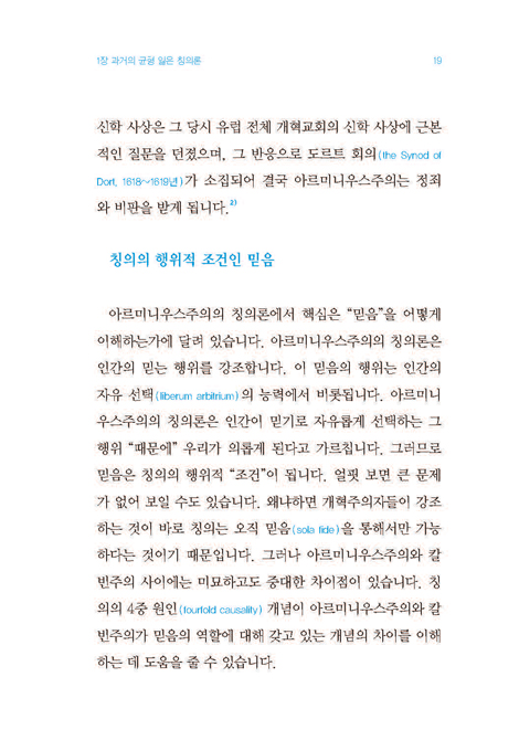칭의론에 대한 혼란은 역사적 뿌리가 깊으며, 여전히 현재 진행형이다. 무엇보다도 하나님의 절대주권과 인간의 역할 사이의 적절한 관계 설정은 언제나 칭의론 논란의 중심에 있었다. 이 둘 사이의 관계에 대한 개혁주의적 관점을 일목요연하게 정리하기 원한다면 이 책을 읽을 것을 적극 추천한다.