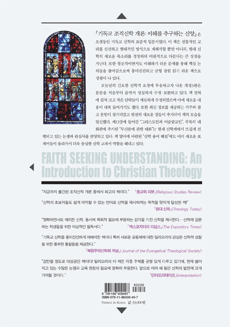 오랫동안 기독교 신학의 표준적 입문서로 사랑받아온 『기독교 조직신학 개론: 이해를 추구하는 신앙』의 개정3판이 출간되었다. 이 책은 전통적인 교리를 신선하고 현대적인 방식으로 재해석할 뿐만 아니라, 현대 신학의 새로운 목소리를 경청하되 비판적으로 다룬다는 큰 장점을 지닌다. 또한 창조적이면서도 이해하기 쉬운 문체를 통해 핵심 논의들을 풀어감으로써 흥미진진하고 균형 잡힌 읽기 쉬운 책으로 정평이 나 있다.