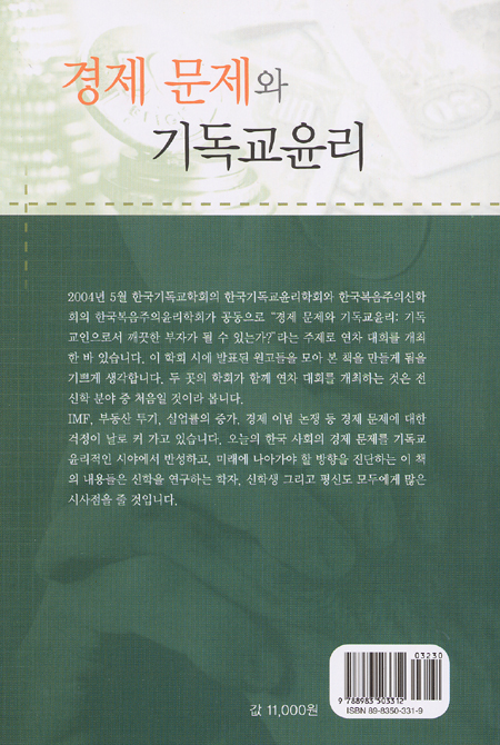 2004년 5월 한국기독교학회의 한국기독교윤리학회와 한국복음주의신학회의 한국복음주의윤리학회가 공동으로 "경제 문제와 기독교윤리 : 기독교인으로서 깨끗한 부자가 될 수 있는가?"라는 주제로 연차 대회를 개최한 바 있습니다. 이 학회 시에 발표된 원고들을 모아 본 책을 만들게 됨을 기쁘게 생각합니다.