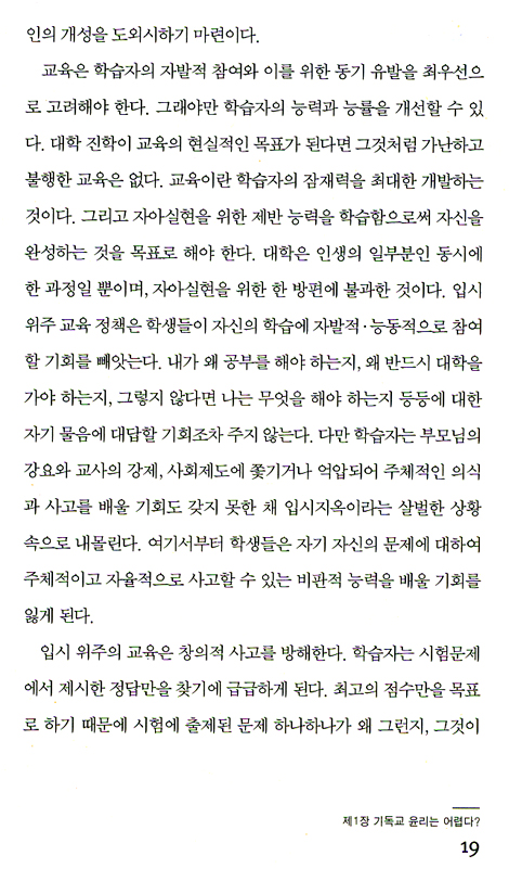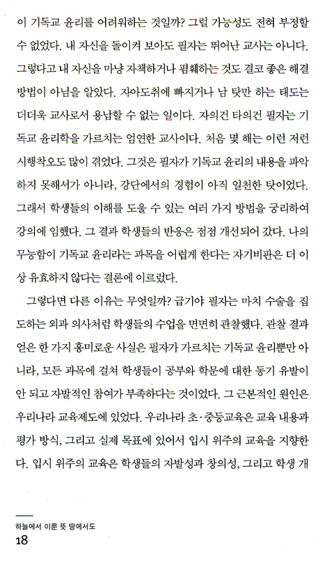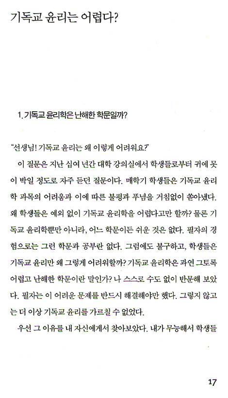 제 개인적인 생각으로는 이 땅에 복음이 들어오면서 이 책이 함께 쓰여졌다면 기독교가 이처럼 나락으로 떨어지지 않았을 것이고, 우리나라 기독교는 성서의 가치가 빛을 발하는 성서 한국이 되엇을 것이며, 당연히 한국 교회는 서구 기도교보다 더한 빛나는 교회가 되었을 것입니다. 이토록 깊고 소위 재미없는 것으로 알려진 기독교 윤리학을 이렇게 평이한 문장으로 써내려 갈 수 있다면 이는 하나님이 그에게 주신 재능일 것입니다.