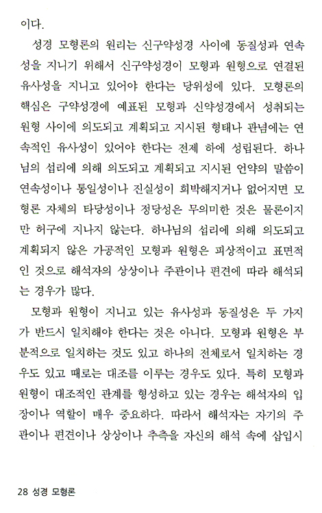 이 책은 그리스도인들에게 신구약성경의 관계성과 인류 구원의 역사가 예수 그리스도 중심으로 어떻게 이루어졌는가를 이해하는데 큰 도움을 줄 것이다. 신구약성경이 성령의 감동이나 하나님의 계시로 쓰였다는 특수한 상황이 있기는 하지만 인간이 사용하는 언어로 쓰였다는 점에서 수사학적으로 모형론적 해석이 알레고리, 상징, 예언과 어떤 관계가 있으며 성경을 문학적으로 이해하는데도 큰 도움을 줄 것이다.
