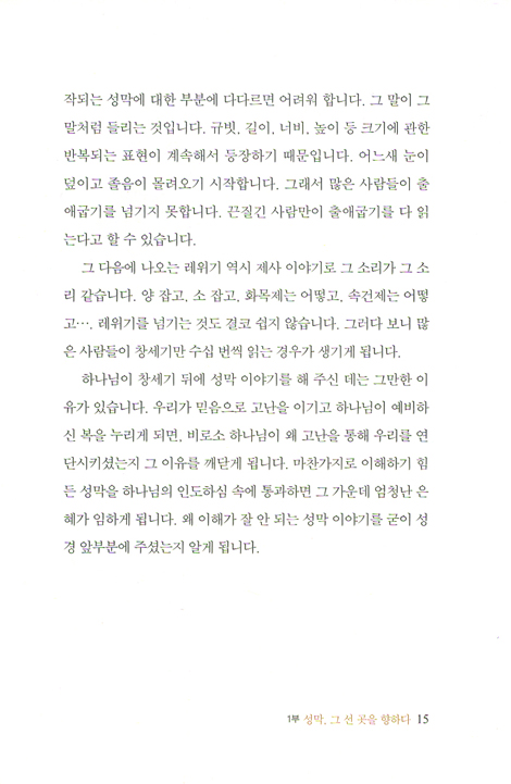 한눈에 성막 전체를 조망하고 신앙을 한 단계 업그레이드 한다. 성경에서 단일 주제로는 가장 많이 설명된 것이 성막이다. 하나님은 성막을 통해 구약 시대뿐 아니라 오늘날의 우리에게도 신앙의 전반을 돌아보게 하신다. 어렵고 재미없다고 생각한 성막의 구성요소들을 세밀화로 표현한 일러스트와 함께 쉽고 재미있게 설명했고, 이를 오늘날의 우리 신앙생활에 어떻게 적용해야 할지를 보여주고 있다. 성막을 구약에 있었던 지나간 예표로 치부하는 성도들에게 올바른 성막의 의미와 필요성을 명확하게 설명해준다.