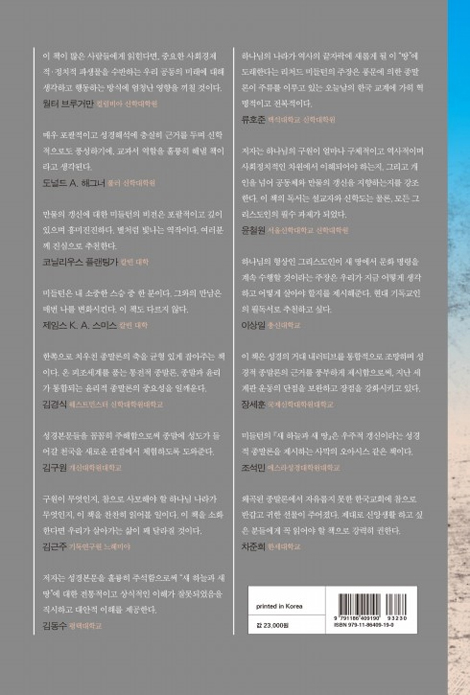 하나님의 나라가 역사의 끝자락에 새롭게 될 이 “땅”에 도래한다는 리처드 미들턴의 주장은 풍문에 의한 종말론이 주류를 이루고 있는 오늘날의 한국 교계에 가히 혁명적이고 전복적이다.
