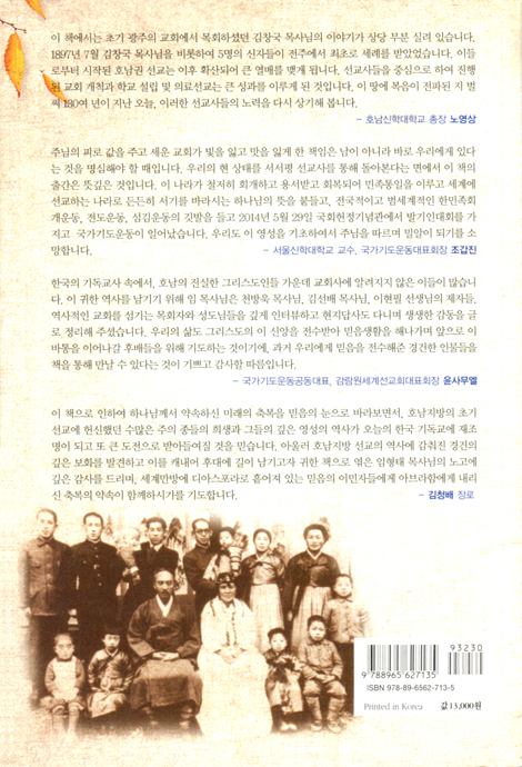 저자는 국가기도운동에 참여하면서 한국교회에 잘 알려지지 않은 선교사 및 목회자 그리고 평신도 지도자들을 찾아 그분들이 남모르게 흘렀던 땀과 눈물을 조명하면서 오늘의 교회와 영적 지도자들에게 일깨움을 주기 위해 이 책을 썼다. 그들의 지혜를 본받아 교회의 본질을 회복하고 진정한 봉사와 섬김의 자세로 나아갈 수 있도록 도우며 호남지방에 뿌려진 남장로교 선교의 뿌리를 찾아볼 수 있다.