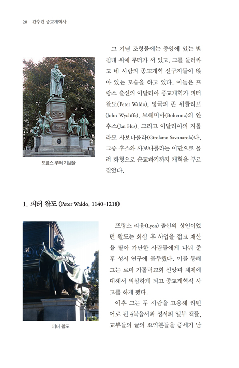 역사는 시간의 문제이자, 공간의 문제입니다. 때문에 현장이 없는 역사는 공허한 낭설에 불과합니다. 이 책은 충실한 해설과 역사적 화보를 통해 지금의 세계를 결정지어 준 500년 전 종교개혁을 현재화시켜 줬습니다. 16세기 종교개혁의 핵심을 인물, 장소, 사건을 통해 이해할 수 있는 매우 유익한 책입니다.