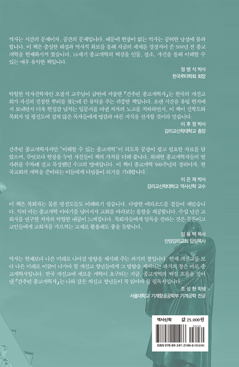 탁월한 역사신학자인 오광석 교수님이 금번에 저술한 『간추린 종교개혁사』는 한국의 개신교회가 자신의 진정한 뿌리를 찾는데 큰 유익을 주는 귀중한 책입니다. 오랜 시간을 유럽 현지에서 보내면서 더욱 현실감 넘치는 입문서를 펴낸 저자의 노고를 치하하면서, 이 책이 신학도와 목회자 및 평신도에 걸쳐 많은 독자들에게 영감과 바른 지식을 선사할 것이라 믿습니다.