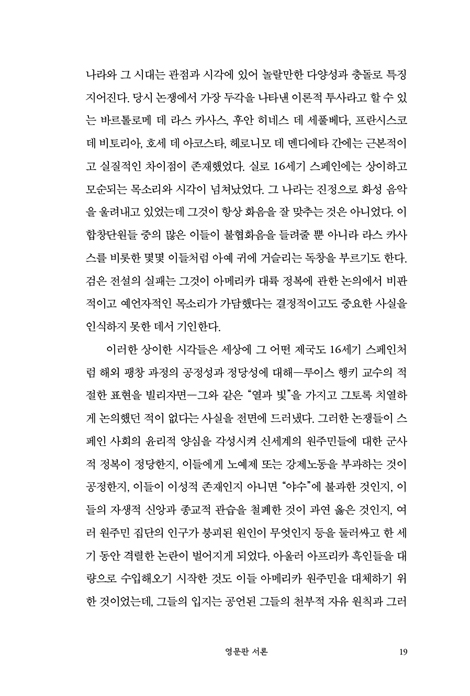 시도다. 내가 사료들을 광범위하게 인용하는 것은 바로 이러한 이유 때문이다. 당대에 벌어졌던 논쟁의 주인공들은 유럽의 패권과 기독교라는 종교가 전 세계로 확대되어가는 역사 형성의 과정에 개입된 여러 쟁